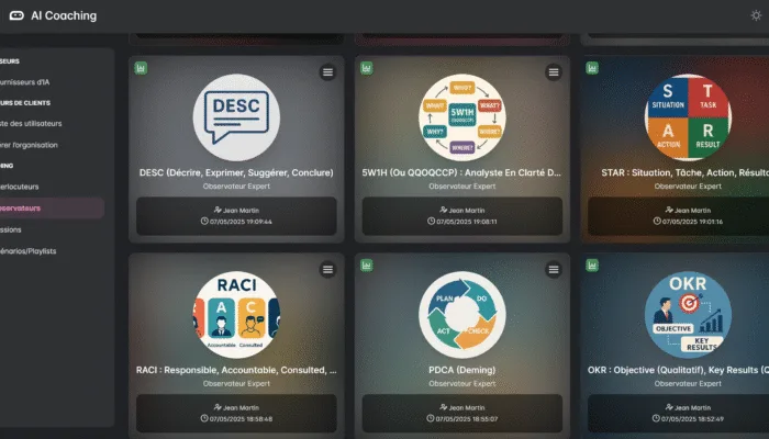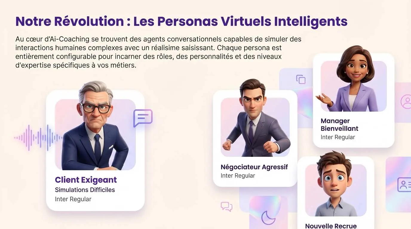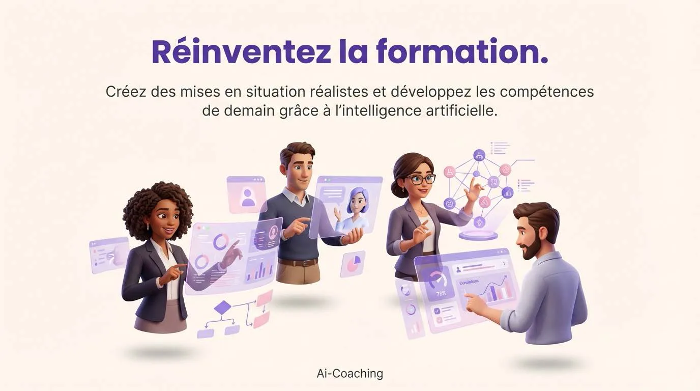 Ai Coaching révolutionne la formation en entreprise grâce à l’IA. Créez, personnalisez et scénarisez des parcours de formation accompagné par une IA immersifs basés sur des mises en situation réalistes et interactives. En quelques clics, vous concevez des parcours uniques adaptés au profil, aux enjeux métier et au niveau de compétence de chaque apprenant.