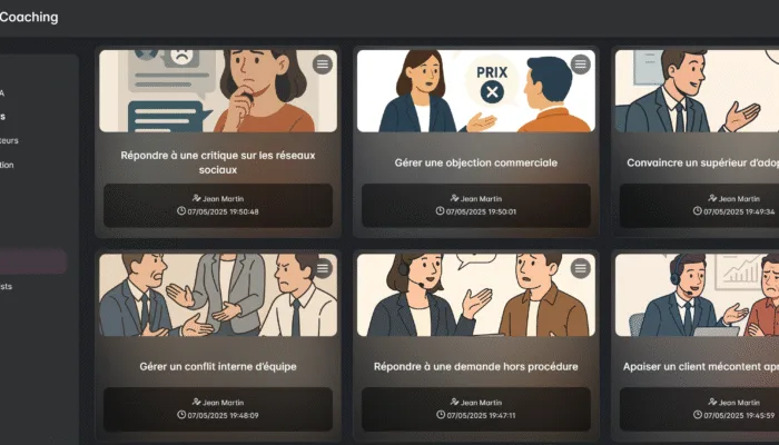 Renforcez les compétences managériales avec des simulations IA concrètes centrées sur la gestion d’équipe, la communication et la prise de décision.
