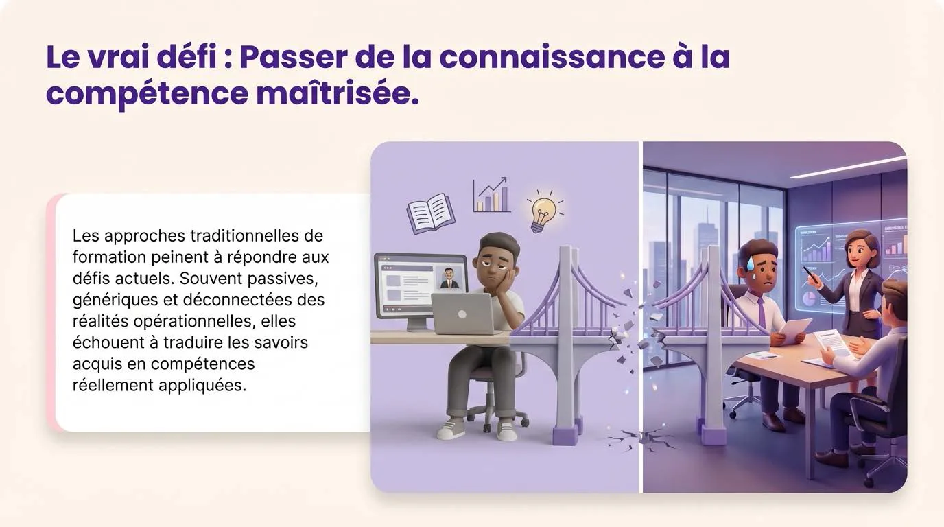 Moins de coûts, plus d’efficacité : réduisez les dépenses de formation IA, gagnez du temps opérationnel et améliorez la rétention des compétences avec un impact visible dès les premières sessions.