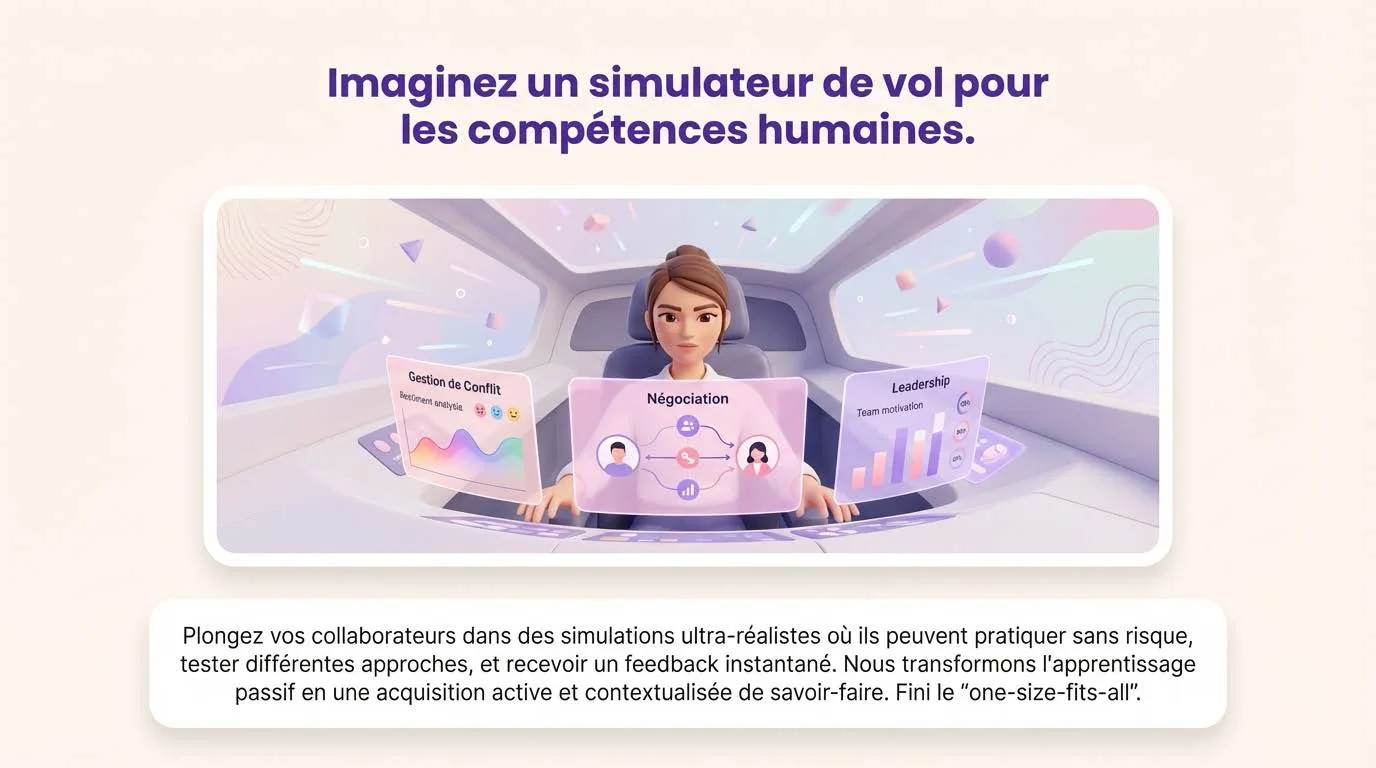 Des scénarios sur‑mesure adaptés à vos métiers, objectifs et profils utilisateurs grâce à l’IA.