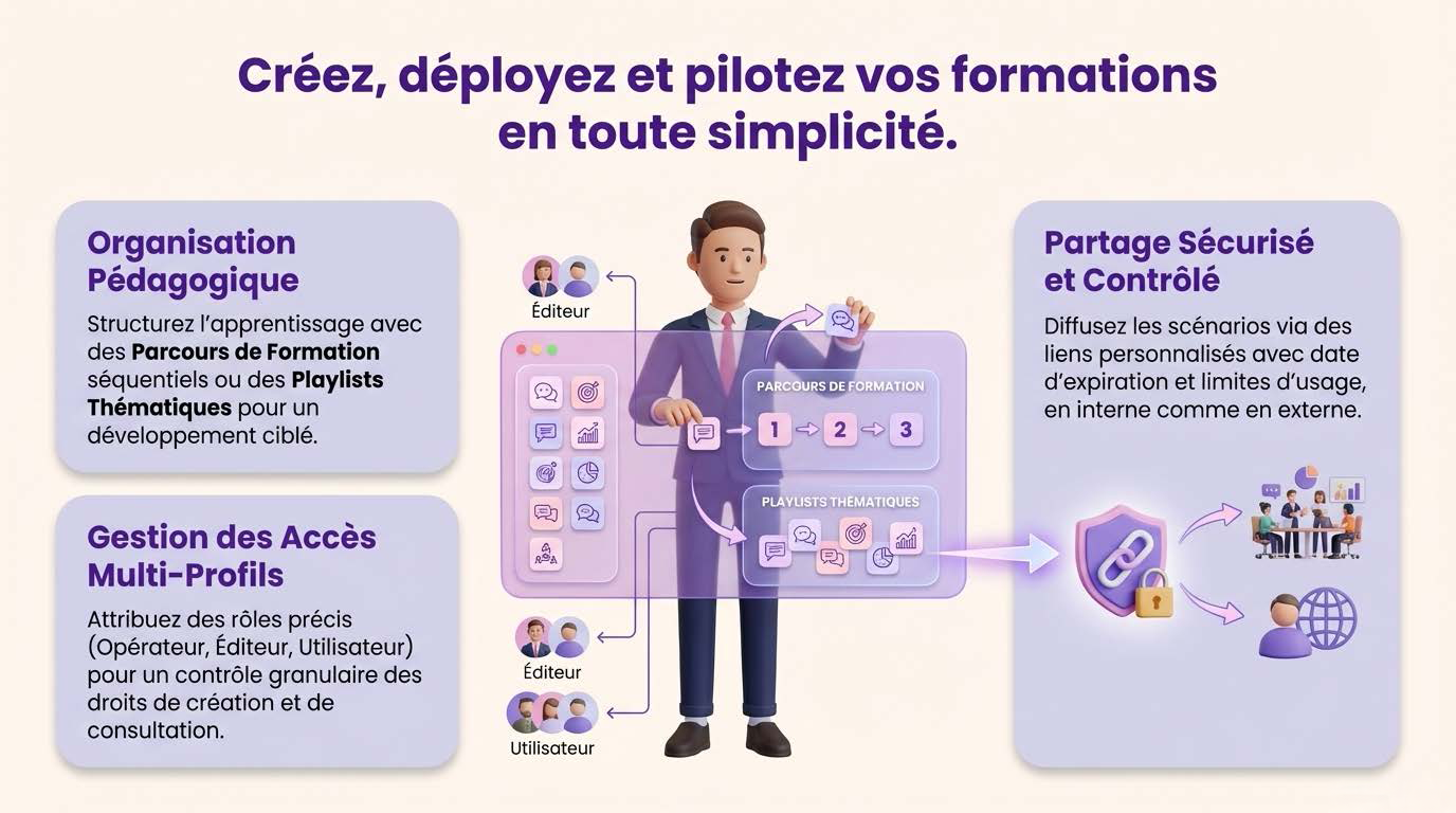 Créez des mises en situation réalistes et mettez en place des formations innovantes grâce à l’IA.