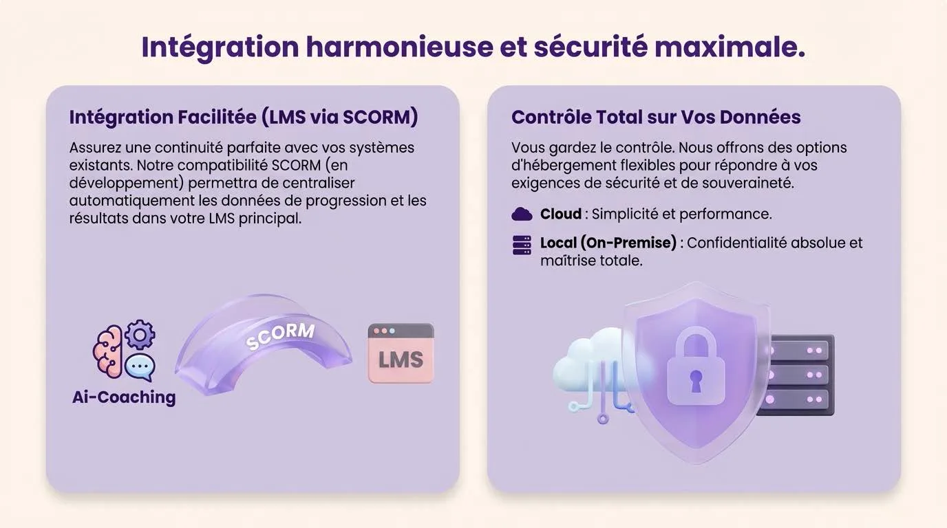 Intégrez vos formations IA dans votre LMS grâce à la compatibilité SCORM.